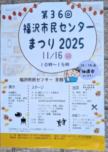 第36回福沢市民センターまつり 2025が、開催されますよ。