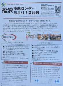 11月16日(日)福沢市民センターまつりを開催した。ステージでは、合唱やアコーディオン演奏、 児童館のダンス、太極拳など多種多様な演技。
