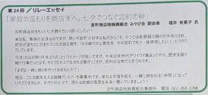 February 19, 2026 10:06 am 福沢市民センターだより3月号の中のリレーエッセーで当組合のみやび会 副会長である福井恵美子氏が、「家庭の温もりを商店街へ。七夕でつなぐ宮町の絆」と題して掲載いただきました。 福沢シニア大学 受講生 募集します!