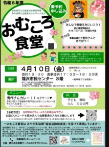 おむころ食堂が、福沢市民センターにて開催されますよ。【要予約申し込み】